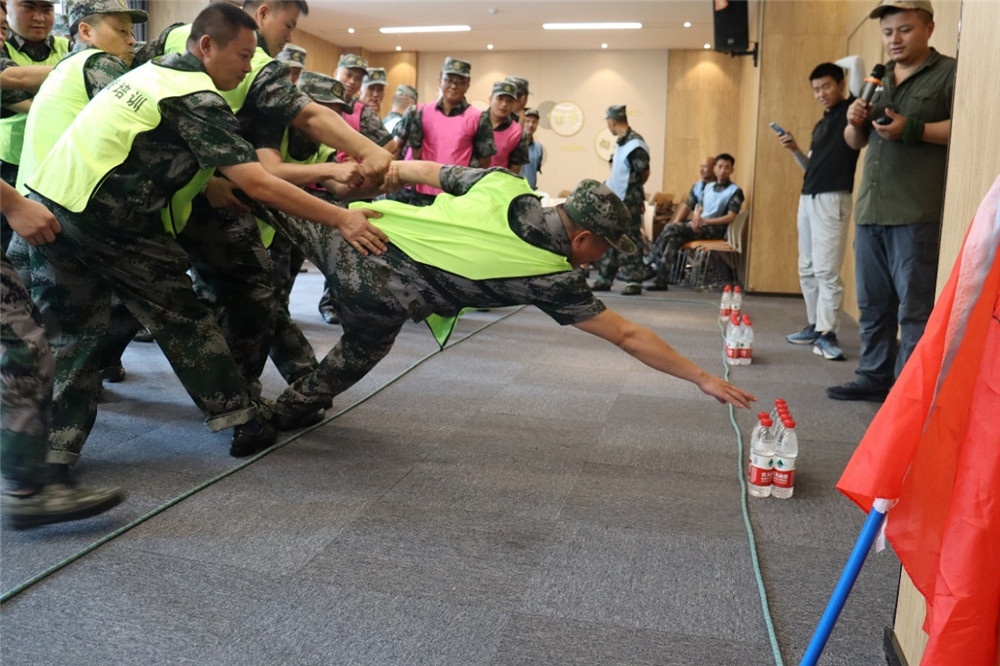 簡單的熱身后,活動正式開始。教官將人員分為3個小隊,每隊10人,并由隊員推選出了每隊的隊長。在隨后的活動中,各隊隊員在隊長的指揮下,通過默契的配合,頑強的意志,爆發(fā)出強大的 團隊力量,完成了教官布置的一項項任務。活動持續(xù)了近三個小時,在激烈的角逐中,老兵們使出渾身解數(shù),分工合作,團結(jié)互助,展現(xiàn)出了紀律嚴明、不怕苦、不服輸?shù)能娙孙L采。同時現(xiàn)場精彩紛呈,不乏歡聲笑語。